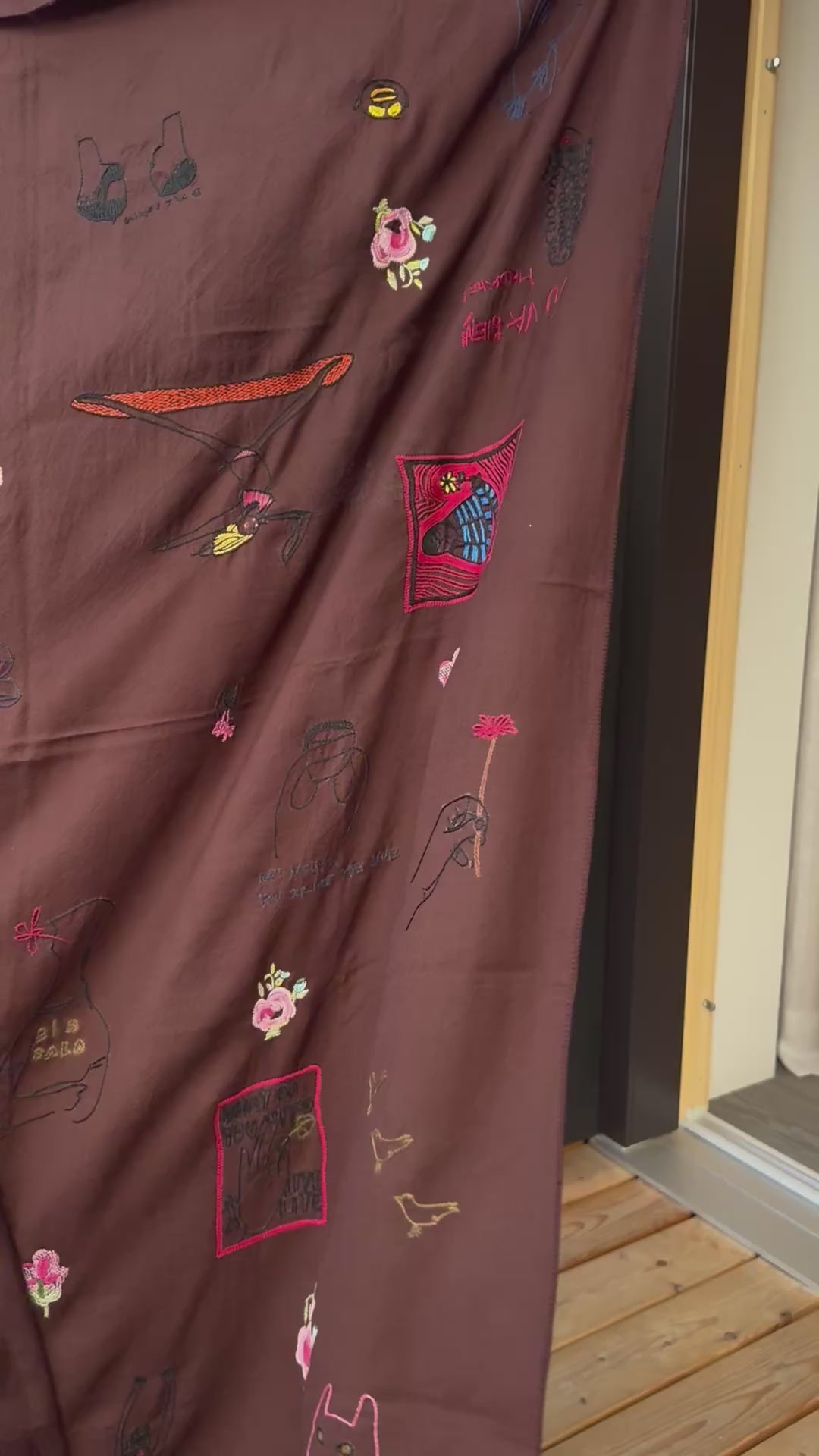 Stella ist ein großer, doppelseitiger Schal aus weichem Wollstoff mit wunderschönen Stickereien, die in Handarbeit aufgetragen wurden.